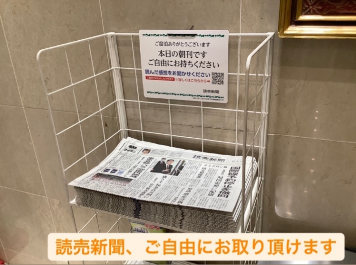 1階フロントロビーにて読売新聞を期間限定、無料でご用意しております(^^♪