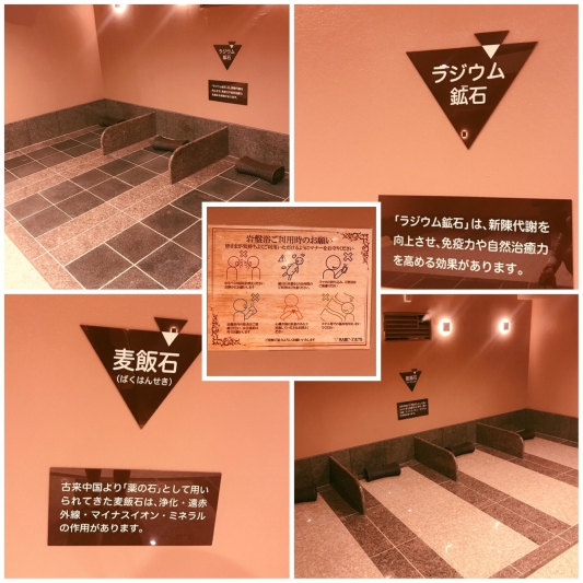 北館エレベーター前から入って右手側、くつろぎ処側には麦飯石とラジウム鉱石によってつくられた滑らかな床タイプの岩盤浴。