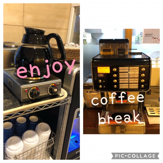 無料朝食サービスでは、ドリップタイプのコーヒーと、全自動で豆から挽いたエスプレッソマシンのコーヒーの2種類ご用意しております☆